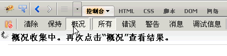 除了使用console.profile()方法,firebug还提供了一个"概况"(Profiler)按钮。第一次点击该按钮,"性能分析" 开始,你可以对网页进行某种操作(比如ajax操作),然后第二次点击该按钮,"性能分析"结束,该操作引发的所有运算就会进行性能分析。